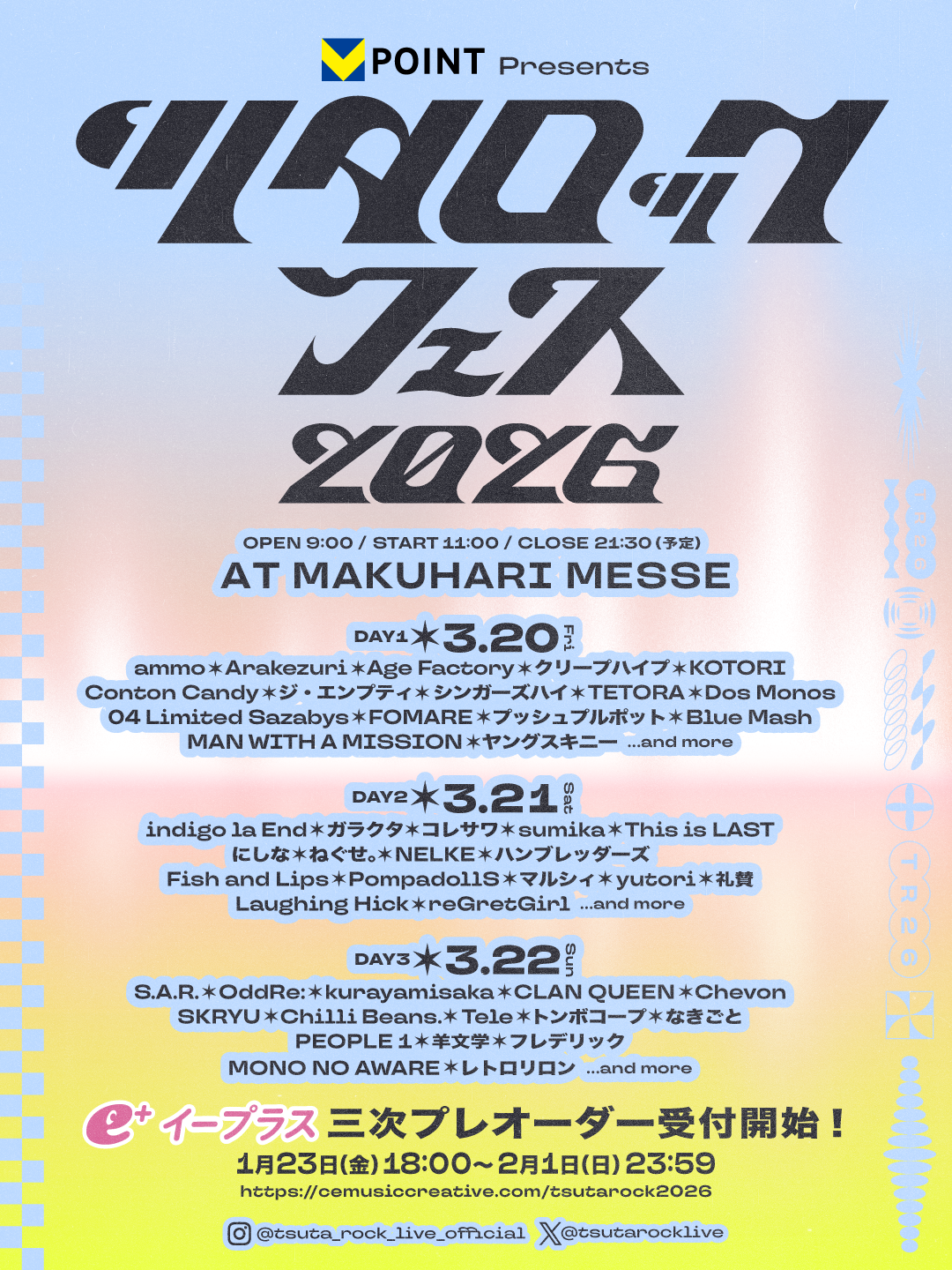 専用URL:https://eplus.jp/tsutarockfes/オフィシャルHP : https://cemusiccreative.com/tsutarock2026