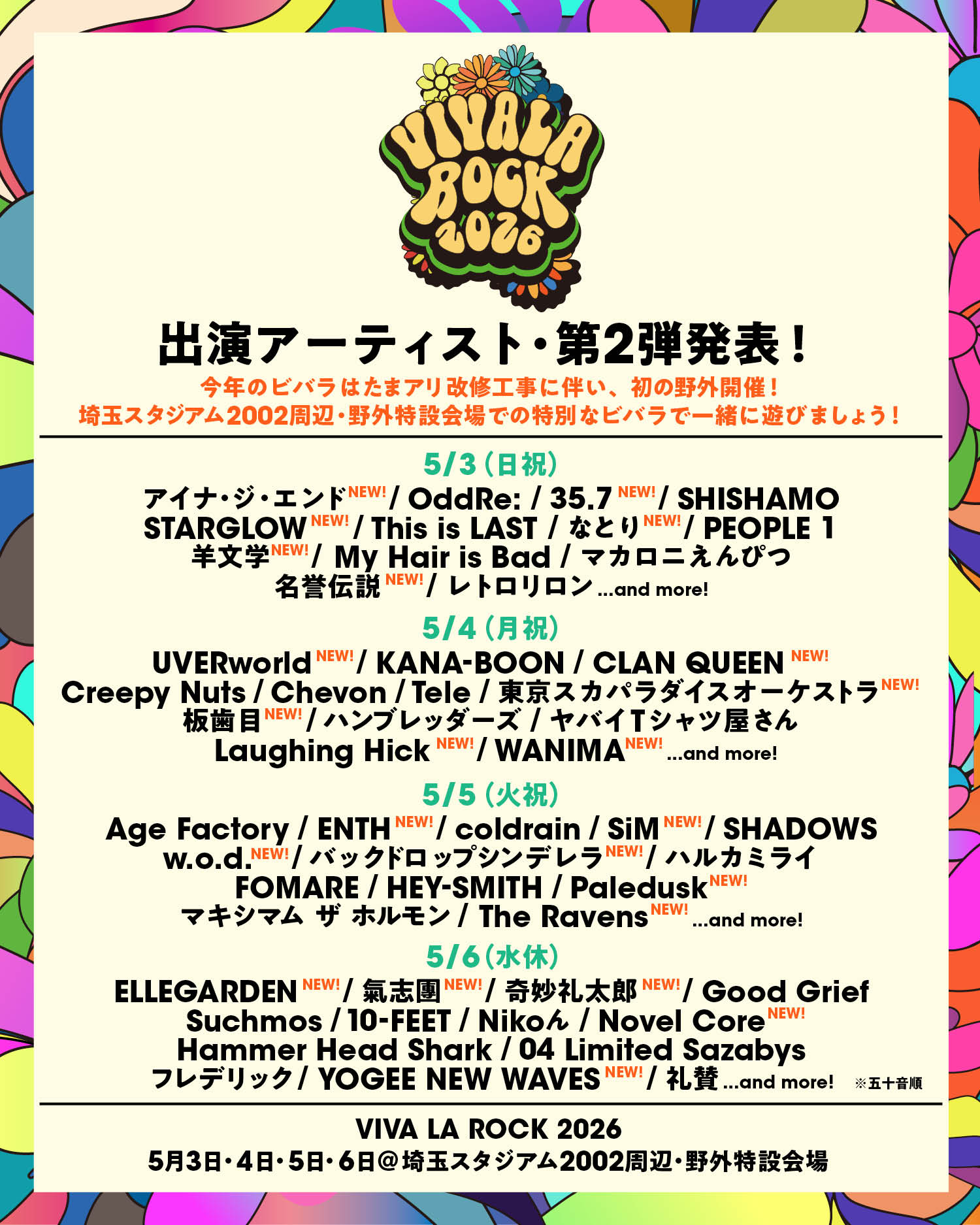 「VIVA LA ROCK 2026」への出演が決定しました。